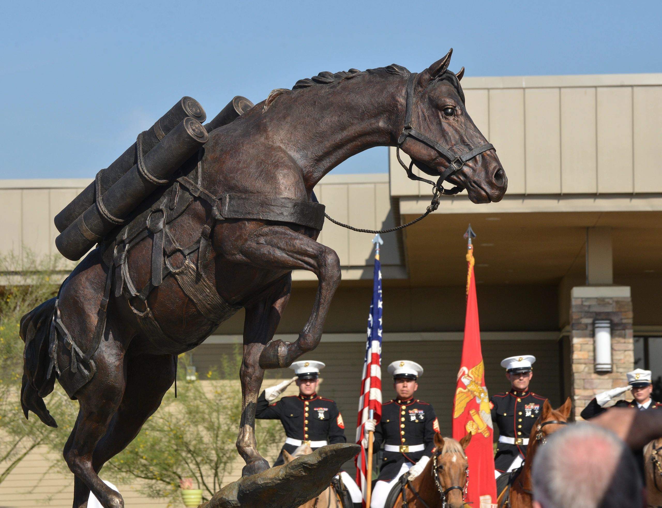 AWW’s mission also honors those animals that have served our country on the war and home fronts with Monuments, Medals, and a future traveling Museum that will teach history through the eyes of the animals. Through the DBA Sgt Reckless Memorial Fund placed four monuments by artist Jocelyn Russell honoring the great USMC Korean War horse, SSgt Reckless, around the country. Six monuments now stand in her honor.